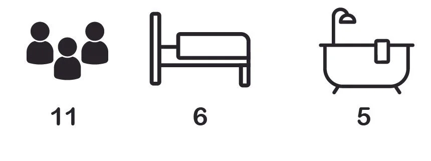 6 bedrooms 5 bathrooms 11 persons