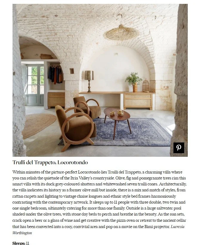 For the second year, we’re proud to be featured by Condé Nast Traveller as one of the best villas in Puglia.