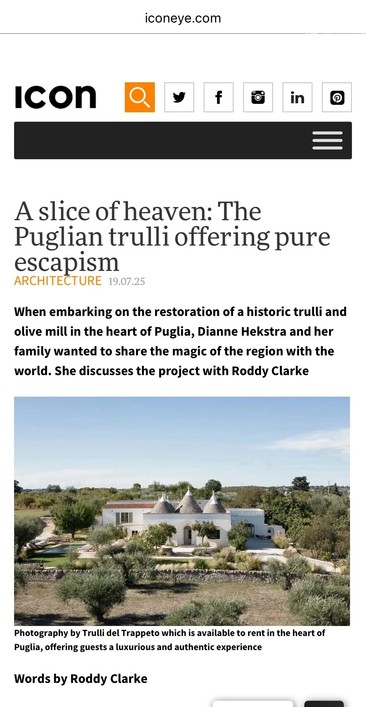 “Trulli del trappeto is a standout property recently renovated with a clear eye for understated luxury and comfort. It is conveniently located to the lovely town of Locorotondo - which is set high with lovely views and has wonderful old town full of excellent restaurants. The house is set off the main road and as a result is a truly peaceful oasis so close to town.”